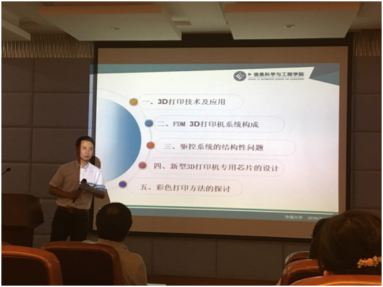 陈中贵老师为我中心师生们作报告 陈为老师为我中心师生们做远程报告  王珂老师为我中心师生作报告  张俊老师为我中心师生做报告 2016年7月26日,厦门大学数字媒体计算研究中心邀请了四位专家教授来研究中心做讲座。厦门大学计算机科学系的陈中贵副教授,浙江大学计算机学院CAD&CG国家重点实验室的陈为教授;哈尔滨工业大学机器人研究所的王珂博士,和中南大学电子与通信工程系的张俊特聘研究员。 在报告中,四位专家分别就自己的专业领域进行了详细的介绍。陈中贵老师报告的题目是:“最优网格剖分生成的变分方法”。在报告中,陈老师首先简单介绍了计算机图形学研究中网格剖分的生成问题,然后详细介绍了他们课题组基于变分原则的最优网格剖分的生成方法研究进展。陈为老师报告的题目是:“大数据时代的可视化挑战与机遇” 。报告中,陈老师介绍数据可视化的基本概念以及新媒体时代下的可视分析的内涵,阐述可视化学术界的近期关注重点,并展示面向大规模数值计算模拟、智慧地球、商业智能、数据新闻等应用的可视分析案例。王珂老师报告的题目是:“智能制造与机器人技术”。报告中,王老师首先简述了在当前智能制造背景下机器人技术研究的相关问题,然后介绍了哈尔滨工业大学和哈工大机器人研究所状况,最后分析了国内外服务机器人和工业机器人的技术发展及产业发展情况,存在的问题和发展趋势。张俊老师报告的题目是:“3D打印机驱控系统存在的结构性问题及解决方案研究”。报告中,张老师介绍现有FDM 3D打印机驱控系统及3D打印的工作原理,揭示其在打印速度、稳定性以及精度上存在的结构性问题;分别从喷头运动路径快速生成、多运动轴实时同步驱动、基于硬件PID算法实时温度控制等几个方面探讨提高3D打印速度及精度、改善打印稳定性的方法,并进一步讨论彩色3D打印的实现方法及对驱控系统硬件平台的要求。 四位专家老师的精彩讲解给前来参加讲座的老师和同学们留下了深刻的印象,大家都表示受益匪浅,并对他们的精彩讲座表示衷心的感谢。 陈中贵老师现任职厦门大学计算机科学系,副教授,硕士生导师。2009年6月毕业于浙江大学数学系,获理学博士学位。2009年8月至2010年7月于香港大学计算机系从事博士后研究工作。主要研究兴趣包括计算机图形学、计算几何、数字图像处理等,已在ACM TOG、IEEE TVCG、SIAM SISC、CGF、C&G、Graphical Models等期刊发表多篇论文,已主持国家自然科学基金青年项目和面上项目各一项,福建省自然科学基金面上项目一项。 陈为老师现任职浙江大学计算机学院CAD&CG国家重点实验室,教授。2009-2014分别荣获IEEE Visualization年会最佳论文提名奖、IEEE Pacific Visualization最佳Poster奖、浙江省科学技术奖二等奖、IEEE Conference on CAD&CG大会最佳论文奖、教育部科学技术进步奖二等奖。是十三五国家重点科技专项“云计算与大数据”指南组专家。 王珂老师现任职哈尔滨工业大学机器人研究所,硕士生指导教师,博士后。主持科研课题11项。作为主要研发人员参与工信部NC数控重大专项,国家863计划智能机器人研究课题,国家自然科学基金等纵向课题7项。发表学术论文30余篇,申请发明专利9项。研究领域包括:智能机器人技术,人机交互技术,机器人环境感知技术以及工业视觉检测等。 张俊老师任职中南大学电子与通信工程系副主任,中南大学数字医疗与3D打印研究中心副主任,特聘研究员,博导。日本东北大学机械智能工学博士,曾任日本富士通公司3D图形处理芯片研发项目主管,主持及参与过Carmine、Ruby、Emerald等多个嵌入式3D图形处理芯片的研发。 |