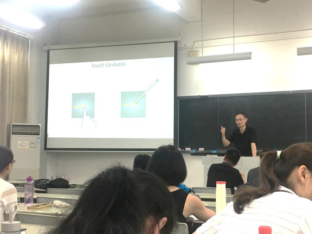 本次暑期学校共开展6场讲座,邀请到了来自美国达特茅斯学院的杨兴栋博士、清华大学的米海鹏博士、南京航空航天大学的涂华伟博士、加州州立大学北岭分校的刘力博士、厦门大学人文学院的黄鸣奋教授以及华为加拿大研究中心的李维博士。6场讲座的主题分别是:Unleash Wearable Interactions from the Disappearing Touchscreens、面向HCI的交叉学科研究实践、面向HCI的交叉学科研究实践、Building Inclusive Technology、新媒体环境下的科幻电影以及Computational Creativity,讲座老师针对各自的主题为大家展示了他在该领域出色的研究,为数字媒体技术专业的学生了解人机交互前沿方向和进展提供了难得的机会。