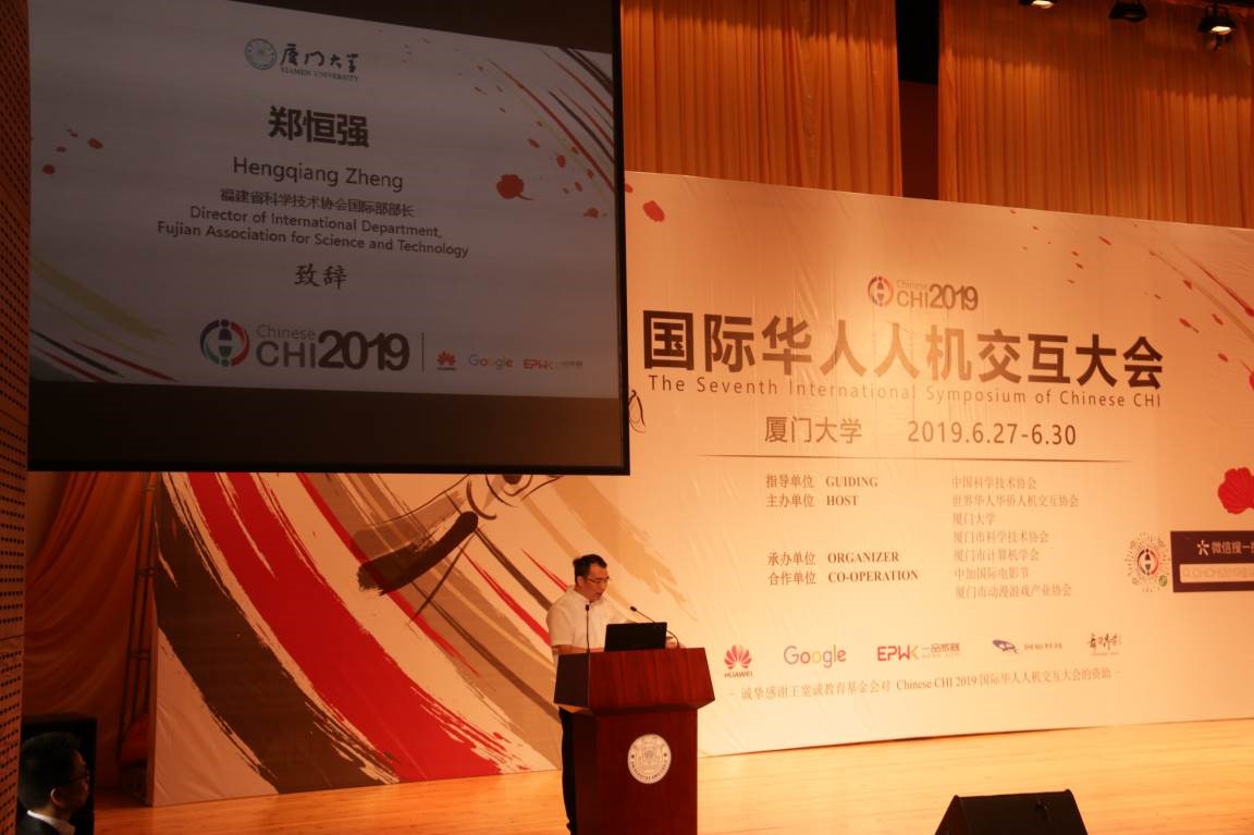 第七届Chinese CHI国际华人人机交互大会由世界华人华侨人机交互协会、厦门大学、与厦门市科学技术协会主办,中国科学技术协会、福建省科学技术协会作为指导单位,厦门市计算机学会承办,作为连接全球范围华人人机交互学科学者、学术界和产业界的重要会议,于2019年6月28日在厦门大学思明校区科学艺术中心隆重举办,本届大会主题为“Happiness(幸福)、Culture(文化)、Innovation(创新)”。