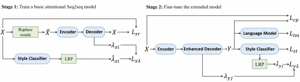 本文第一作者是中心2019级硕士生周楚伦,通讯作者是苏劲松副教授。本文提出了一个无监督文本风格转换模型。本文的核心思路在于通过Layer-wise Relevance Propagation算法发掘词级别的风格相关度作为整个模型风格相关度预测模块的训练目标,并在解码生成过程中预测待生成词的风格强度进行风格转换。本模型在该任务的常用公开数据集上均取得了最优性能。