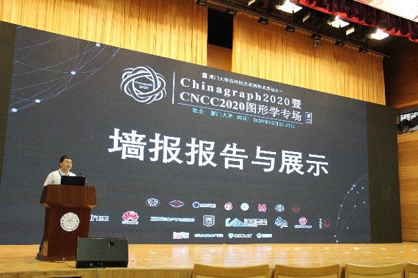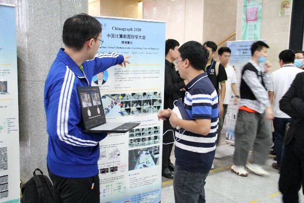 在墙报环节,除了在本次大会录用的5篇墙报论文,还邀请了到近一年内发表于SIGGRAPH、SIGGRAPH ASIA、TOG等图形学顶级期刊会议论文20篇。墙报环节吸引到大量参会人员,与墙报作者进行了深入交流、互动。