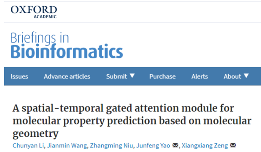 近日,厦门大学信息学院姚俊峰教授团队的一篇论文被国际学术期刊Briefings in Bioinformatics 录用,Briefings in Bioinformatics是CCF B类期刊,影响因子8.990。该论文是利用3D结构进行分子属性预测的最新研究成果,是由厦门大学、德睿智药和湖南大学联合发表于Briefings in Bioinformatics的文章。