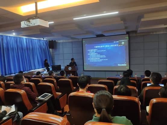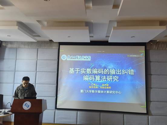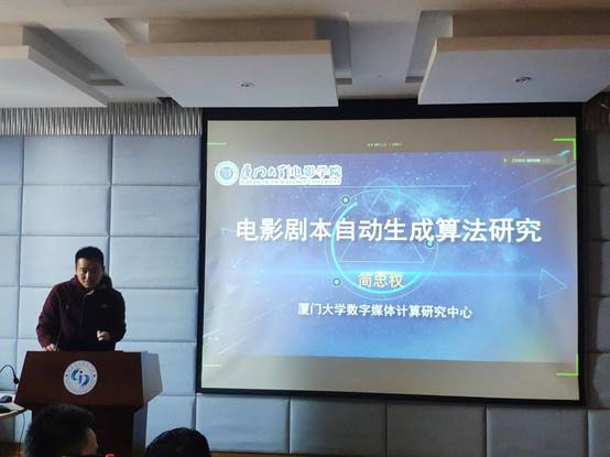 现场的多位老师从不同方向切入,对相关研究工作进行了介绍:信息学院苏劲松教授以代码生成为例,将小组目前研究的文本生成技术娓娓道来。安徽大学互联网学院陈鹏教授于线上为师生做了基于HoloLens增强现实的线缆识别的相关报告,并展示了线缆装配识别的演示视频。信息学院江敏教授主要介绍了在线学习解决动态多目标优化问题,该方法应用到钢铁等多个工业应用场景中已取得了很好的节能效果。数学科学学院曹娟副教授介绍了在三角形构型上的B-Splines,同时展开介绍多个应用场景。信息学院张志宏副教授深耕图理论研究,对近期取得的成果及其应用作了相关报告。随后,人工智能研究院博士生简忠权和信息学院博士生林光毅分别介绍了电影剧本自动生成算法以及基于实数编码的输出纠错编码算法。