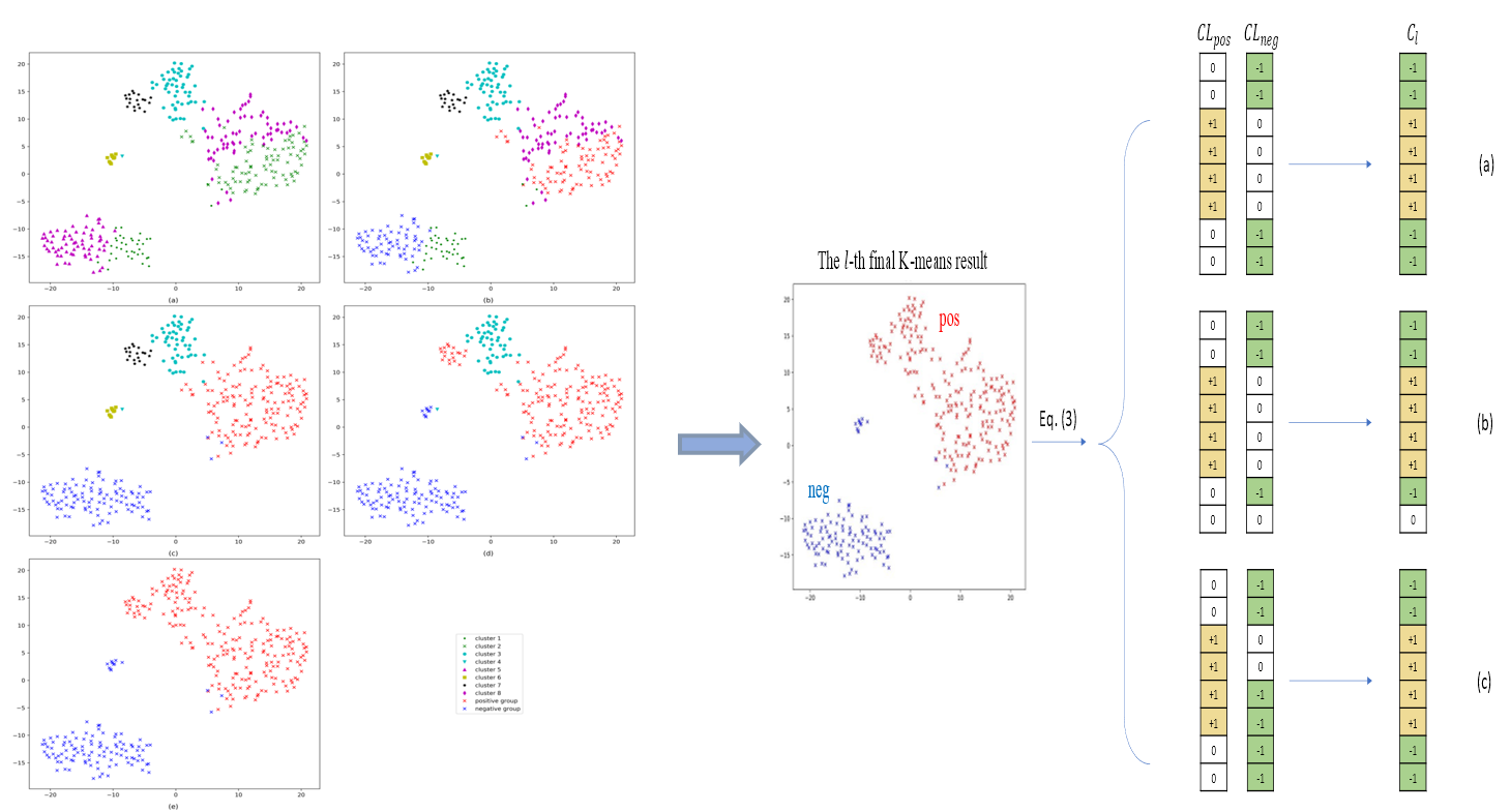 本工作致力于提出了一种新的启发式算法,通过利用特征空间和标签空间结合的先验信息来自启发地生成更合理的纠错输出编码矩阵,以用于偏标签学习。同时,引入特征选择算法,利用特征子空间的先验信息进一步优化分类器集成的性能。在多个偏标签数据集上的实验结果表明,相比于现有的偏标签学习算法以及随机的纠错输出编码矩阵,利用先验信息自启发式生成的模型更能有效拟合数据分布以提高分类性能。