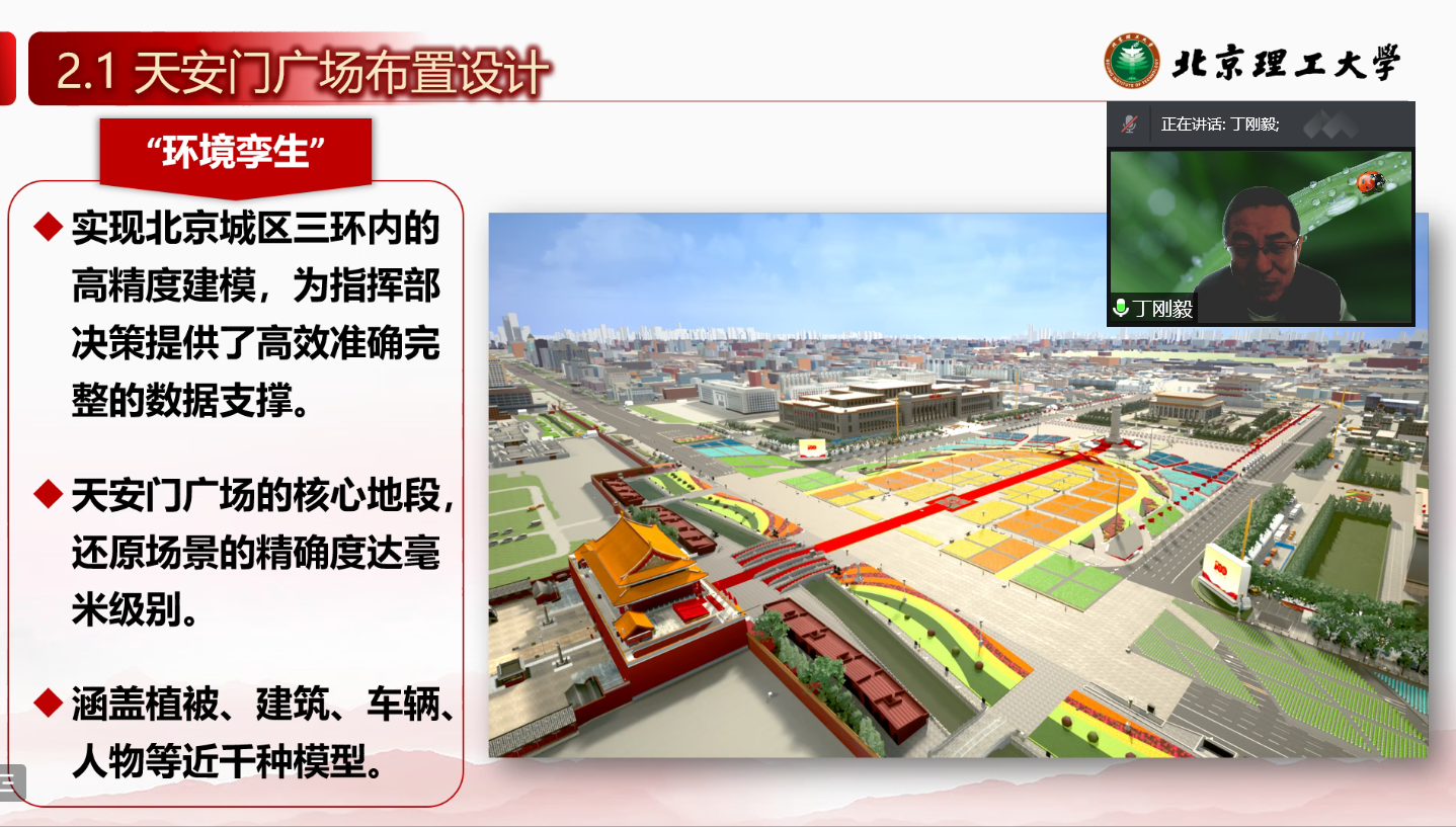 北京理工大学计算机学院丁刚毅教授介绍了智能表演学科相关的创意仿真、虚拟制作技术等,同时展示了团队在建党百年庆典、央视直播方案与科技东奥服务等相关仿真工作。
