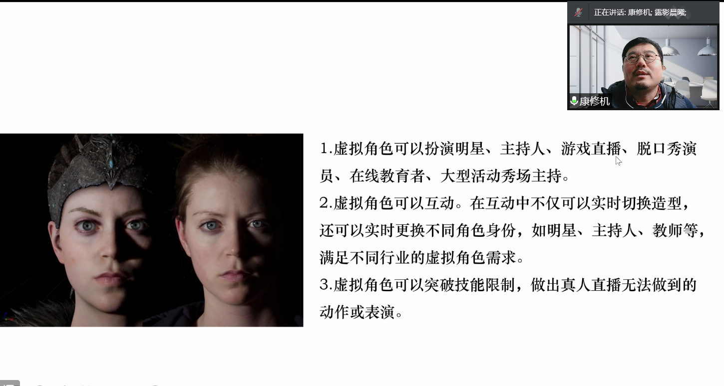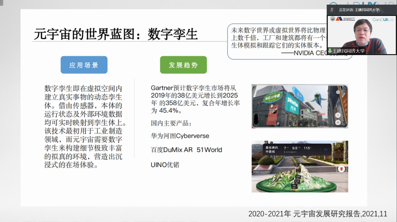 同济大学艺术与传媒学院副院长王建民教授从多个应用场景讲述了元宇宙概念下的虚拟交互影像。