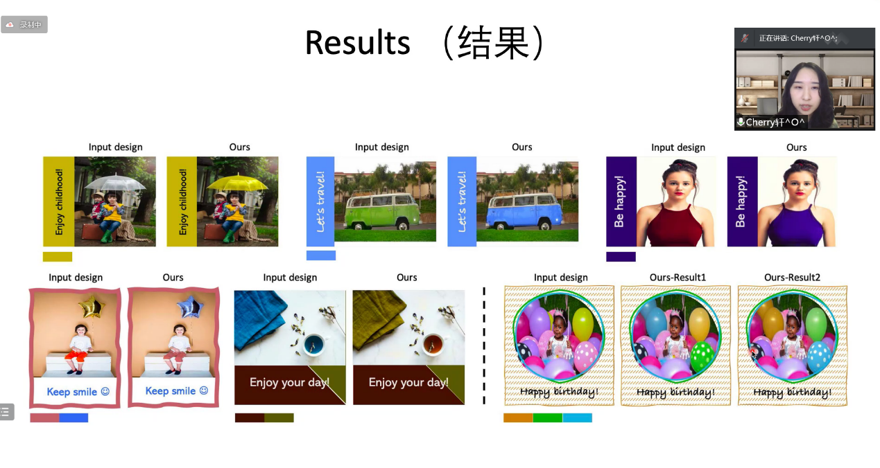香港中文大学赵南轩博士后做了人工智能在平面设计的相关报告,展示了团队近期取得的成果。