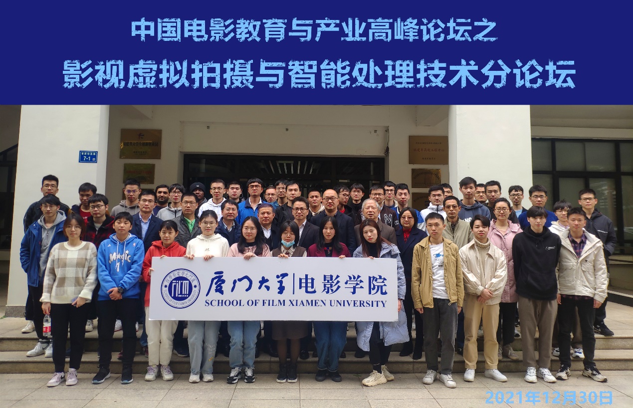 2021年12月30日,中国电影教育与产业高峰论坛之影视虚拟拍摄与智能处理技术分论坛在厦门大学海韵园科研楼一310报告厅召开,并通过腾讯会议同步线上进行。