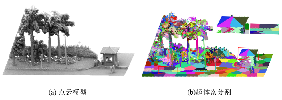 论文提出了一种基于GPU实现的点云超体素生成算法。现阶段点云处理是比较热门的研究课题,对于中大型点云,点云处理任务可以使用超体素作为输入来提高性能。但是现有的点云超体素算法很难在质量和效率上达到平衡。由于优化算法的设计导致现有方法对于大型点云的处理非常耗时,这不利于超体素作为预处理技术被后续应用广泛采用。因此本文使用了轻量级的数据结构,设计了两个并行算法在GPU上实现超体素的分割。本文方法是基于种子点的分割算法,需要计算种子点和体素的距离。距离函数的定义中包括空间距离、法向距离和共面距离,对应的能量计算可以转化为矩阵的形式来表示。将数据加载进显存,我们首先使用类似Lloyd迭代的方式计算体素和种子的距离,这个操作对于所有的体素是可以并行实现的。之后我们使用优化算法来降低整体的分割能量,通过将一个体素从当前所属的种子点交换到邻居种子点来更新分割结果,这个交换的操作对于所有的体素来说是可以并行实现的。基于上述两个阶段的并行算法我们能够非常快速地得到点云超体素。我们的方法在算法效率上超过了现有的方法,并且能够生成质量较好的分割结果。