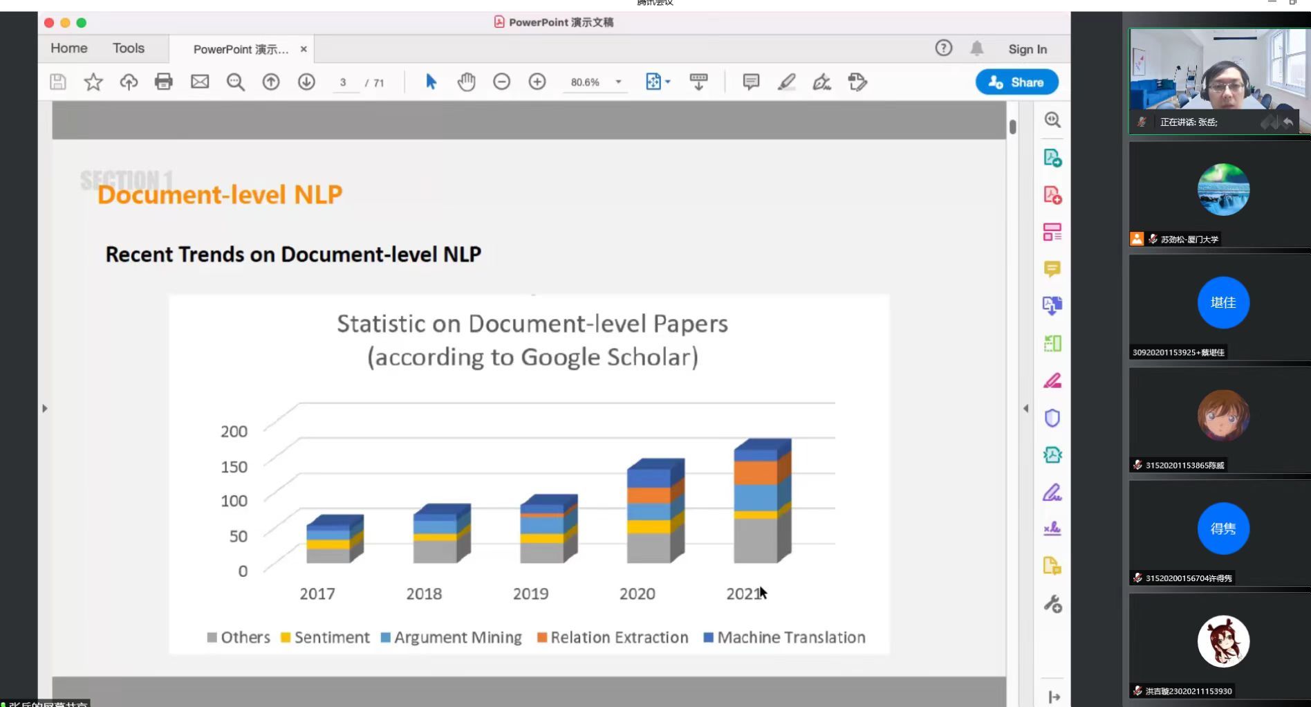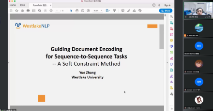 2022年4月29日,应我中心苏劲松老师邀请,西湖大学特聘研究员张岳,带来题为“Guiding Document Encoding for Sequence-to-Sequence Tasks -- A Soft Constraint Method”的线上讲座。讲座由苏劲松老师主持,多名老师、博士生、硕士生及本科生参加了讲座。