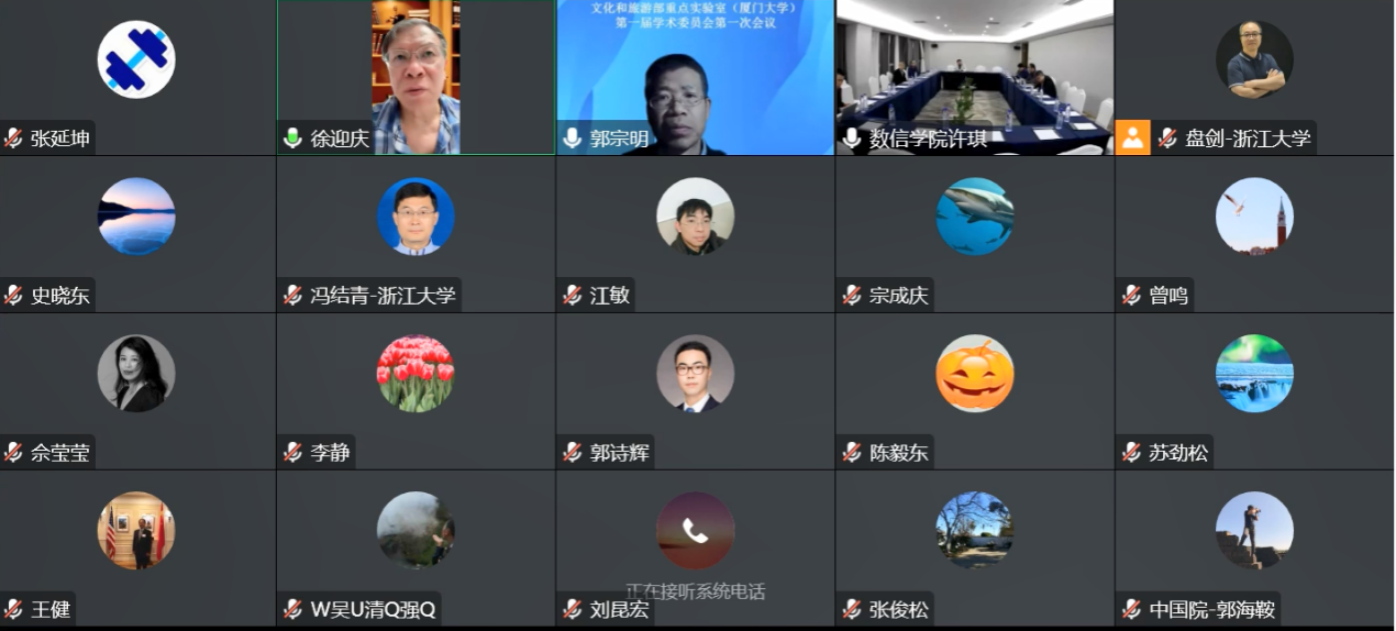 随后,进行了文旅部重点实验室交流会,建筑文化遗产传承信息技术文化部重点实验室张玉坤主任、互动媒体设计与装备服务创新文化部重点实验室吕德生主任,丝绸文化传承与产品设计数字化技术文化部重点实验室邹奉元主任、数字舞台设计与服务文化部重点实验室王汉熙主任、数字音乐智能处理技术文化和旅游部重点实验室谢秉元主任、光影交互服务技术文化和旅游部重点实验室蔡新元主任、可持续旅游智能评测技术文化和旅游部重点实验室赵莹老师、旅游多源数据感知与决策技术文化和旅游部重点实验室夏英老师、民歌智能计算与服务技术文化和旅游部重点实验室吴晓军主任以及闽台非遗文化数字化保护与智能处理文化和旅游部重点实验室史晓东主任共10个文旅部重点实验室主任和其他嘉宾参与线上线下的交流会,会议由厦门大学闽台非遗文化数字化保护与智能处理文化和旅游部重点实验室副主任姚俊峰教授主持。