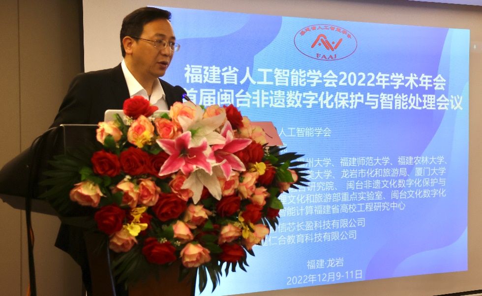 福建省人工智能学会2022年学术年会暨首届闽台非遗数字化保护与智能处理会议于2022年12月9-10日在龙岩市召开,会议主题为“人工智能赋能文旅”,采用“线上+线下”相结合的形式举行。来自北京大学、清华大学、浙江大学、厦门大学等高校近百名相关学科领域专家学者和企业家代表参加了本次线上和线下的会议。