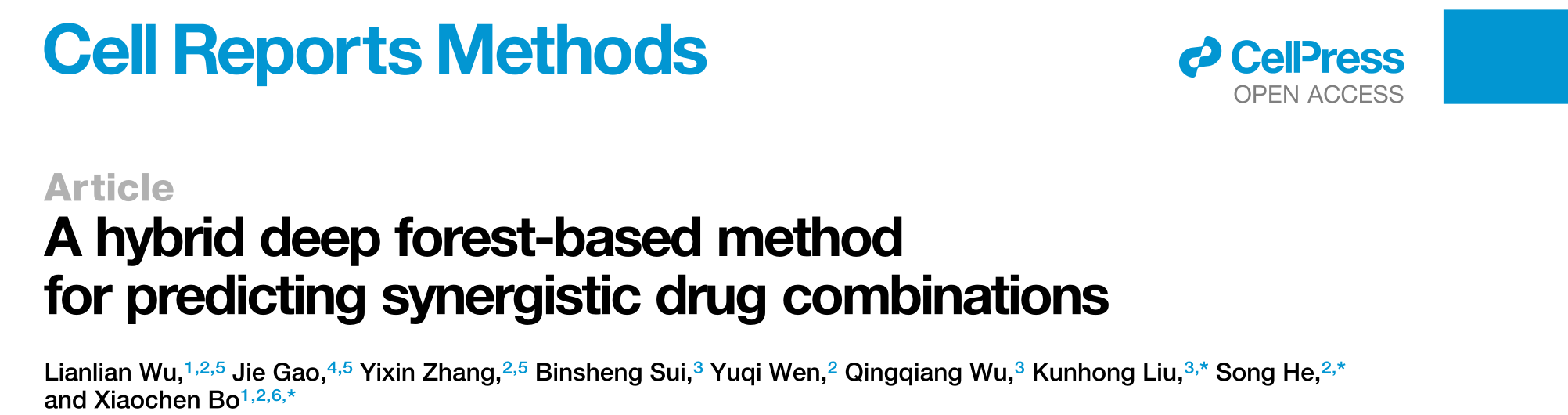 Lianlian Wu, Jie Gao, Yixin Zhang, Binsheng Sui, Yuqi Wen, Qingqiang Wu, Kunhong Liu, Song He, and Xiaochen Bo, A hybrid deep forest-based method for predicting synergistic drug combinations, Cell Reports Methods, 2023, https://doi.org/10.1016/j.crmeth.2023.100411.
