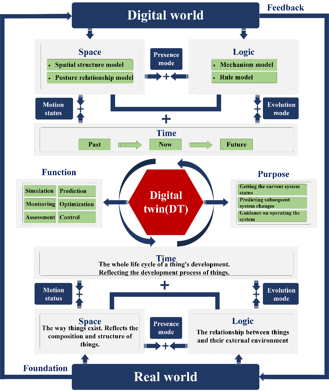 论文从技术与应用两个方面对数字孪生进行了介绍。提出了以TSL(Time, Space and Logic), 即时间、空间和逻辑三元模型为基础的数字孪生理论框架的概念。在时间模型中体现事物发展的全生命周期,反映事物的发展过程;在空间模型中,表达事物的存在方式,反映事物的组成成分与结构;在逻辑模型中,呈现事物内部之间/事物与外部环境之间的关系。论文还对数字孪生TSL模型在钢铁高炉冶炼行业的应用做出了进一步地探索。