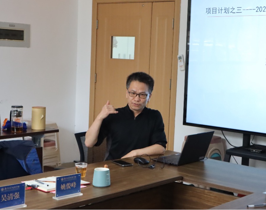 会议伊始,姚俊峰教授对数字媒体计算研究中心2023年的成果进行总结,希望通过本次会议,团队成员之间资源共享、互帮互助,在合作共赢、共同发展的道路上结伴前行。