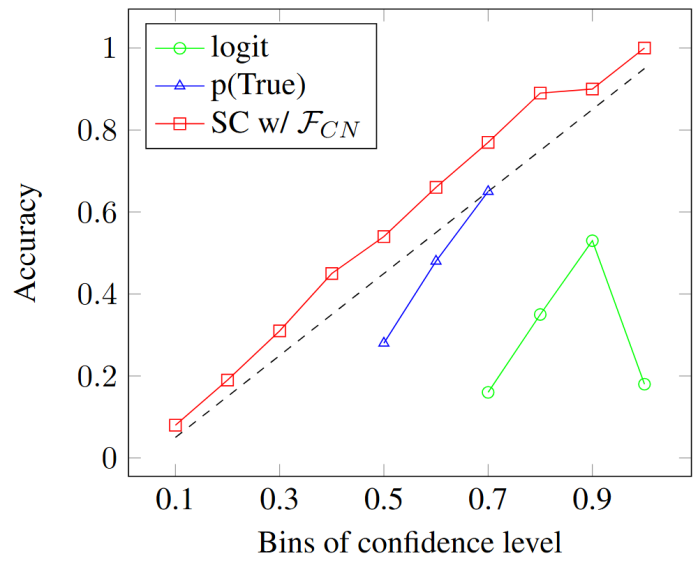Calibration研究模型预测置信度与真实准确率之间的对齐程度,有助于衡量模型的可靠性。该工作研究大语言模型在数学推理问题上的Calibration。实验表明,传统基于概率的评价方法在该场景下表现欠佳,此外,当前广泛使用的商业大模型产品往往难以获取预测概率。对此,该工作提出基于一致性的置信度方法,根据多次采样的答案聚类结果,设计了三种计算置信度的方式:(1)基于类别数;(2)基于类内样本数;(3)基于类别间样本数。多个数据集、不同大模型上的实验表明,三种方法均显著优于传统基于预测概率的方法。