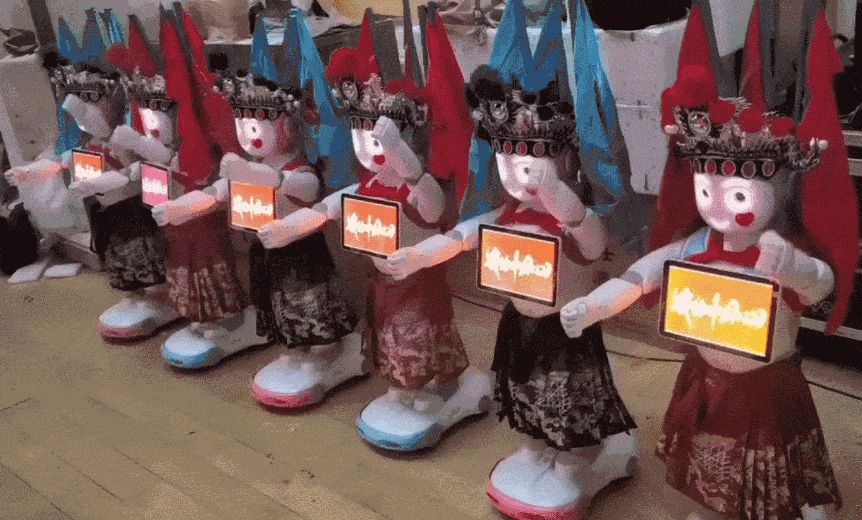 机器人舞蹈队----由多台智能机器人组成,它们可以凭借完美的协调性和灵活性表演高度复杂的传统与现代舞蹈。每一个动作都经过精密的计算和控制,机器人们在舞台上展现了人类无法企及的精准度和同步性,舞蹈过程不仅可展示机器人的高超技术,更让人看到科技可以如何为艺术创作提供全新的可能性。
