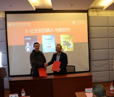 随着社交型机器人技术的不断进步,相关的学术研究和理论成果也在不断深化。活动期间,厦门市社交型机器人公共技术服务平台与厦门大学出版社签署了社交型机器人书稿初、中、高级教材出版协议,进一步推动行业理论研究的成果转化,助力社交机器人技术的科学普及和产业发展。