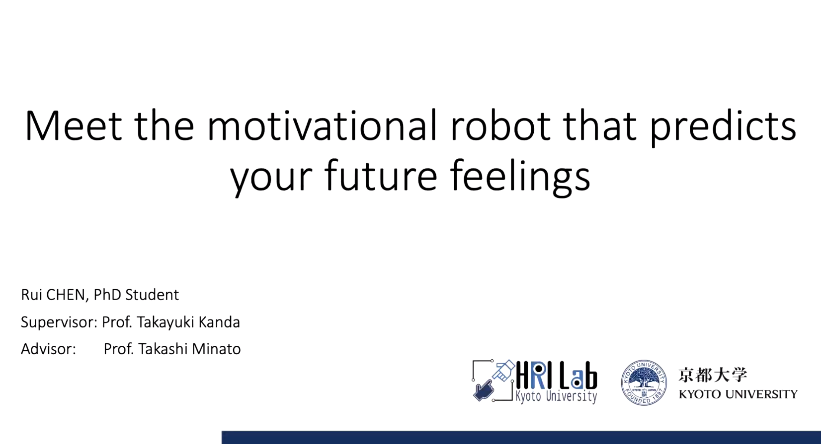 京都大学人机交互实验室博士生陈瑞的演讲主题是预测未来情感:机器人运动中的情感干预。陈博士介绍了如何设计一种机器人系统,通过分析用户的情感状态和行为预测其未来情绪,进而选择最合适的互动方式。在运动训练等场景中,机器人能够通过积极的情感反馈,帮助用户提升运动表现,增加参与感。