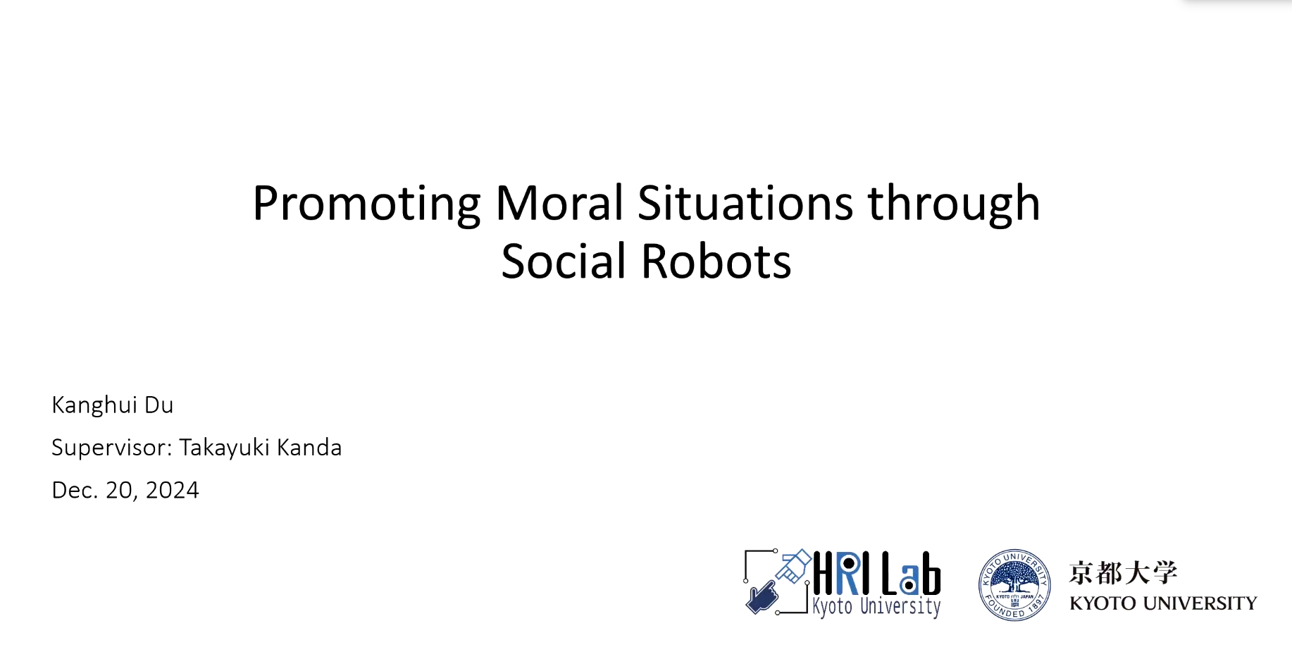 京都大学人机交互博士生杜康晖的演讲主题是促进机器人道德行为:公共空间中的伦理交互研究:如何通过优化机器人行为,尤其是在导航过程中,促进公共空间中的道德互动。他的研究重点是如何设计具有社会意识与伦理指导的机器人,以避免可能的不当行为,并促进人与机器人之间的和谐共处。