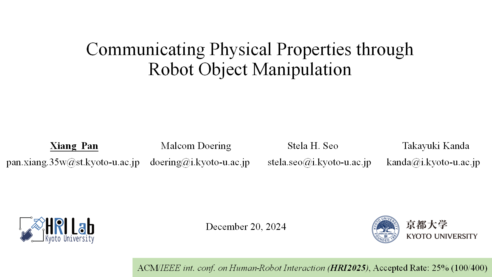京都大学的博士生潘翔的演讲主题是通过物体操控传递物理特性:机器人与人类互动的创新方法,探讨了一项基于物体操控的研究,探讨机器人如何通过操控物体的运动来传递物理特性,如物体的重量、温度和脆弱性等。研究表明,机器人在物体传递过程中传达的物理特性,能够帮助人类准确理解物体的状态,从而提升交互体验。该研究能够为机器人与人类的交互提供更加丰富和直观的感知方式,引起了在场嘉宾的思考。