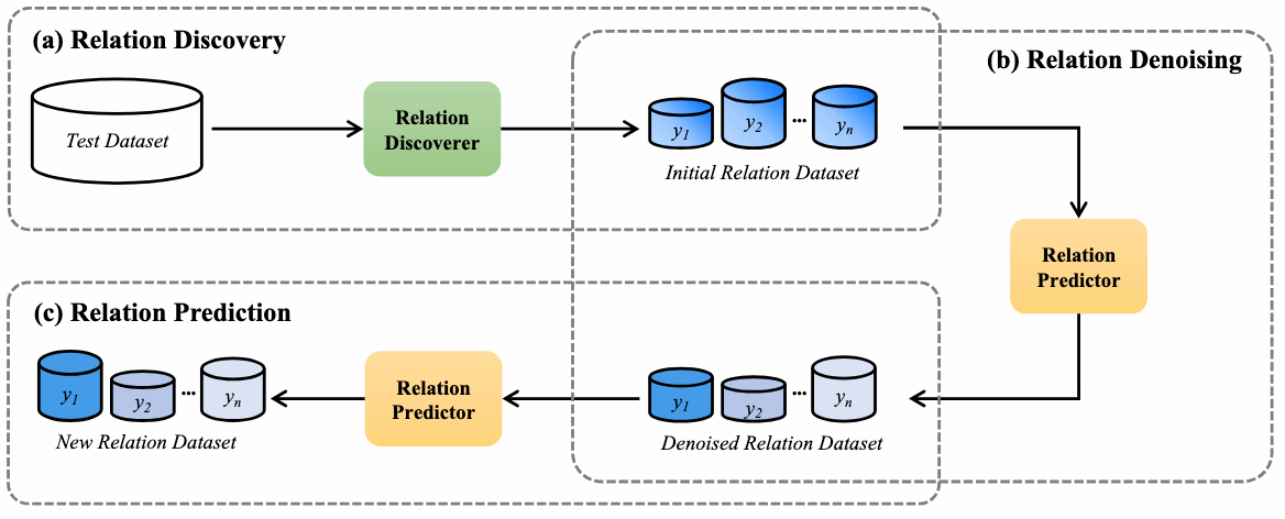 论文简介:现有的开放式关系抽取研究主要基于聚类范式:先对测试实例进行语义聚类,再通过人工标注为每个簇分配关系类型。这种方法严重依赖人工干预,限制了实际应用。本文提出基于大语言模型的新框架,利用LLM强大的语言理解与生成能力,无需人工标注即可自动推断测试实例中的新关系。具体而言,本框架包含两个核心模块:关系发现器通过已知关系实例构建提示样本,初步识别新关系;关系预测器则对候选关系进行交叉验证,精准筛选可靠的新关系实例。为进一步提升性能,我们设计了一种三阶段自校正推理机制,依次完成新关系初步发现、高可靠实例筛选(去噪)和最终关系预测。在三个开放式关系抽取基准数据集上的实验结果有效地验证了本框架的有效性。