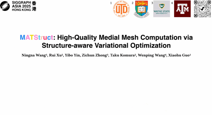 哥伦比亚大学的王宁娜博士后介绍了 MATStruct 方法,这是一种能为复杂 3D 物体生成高质量中轴网格的计算几何技术。该成果能够精准提取三维模型的内部骨架,为虚拟现实和机器人运动学建模提供了更稳定的基础表示。