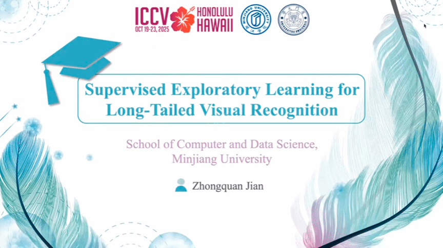来自闽江学院计算机与大数据学院的简忠权博士发表了题为《监督式探索学习在长尾视觉识别中的应用》的报告。他介绍了如何通过监督式探索学习框架解决人工智能识别罕见物体时的失衡问题,研究有效增强了系统在不平衡数据下的鲁棒性,在无需大规模调整模型的基础上提升了机器人在多样化环境下的认知准确性。