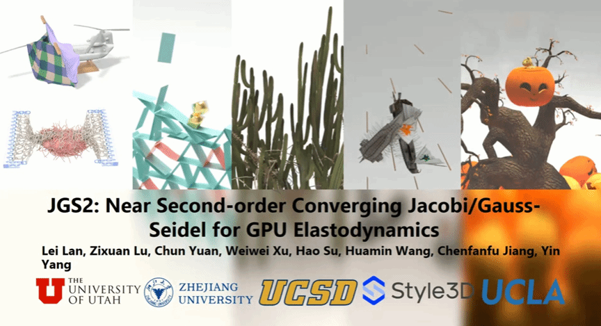 浙江大学的蓝磊博士展示了 JGS2 算法,这是一种优化 GPU 上动力学计算的高效率路径。该成果大幅提升了物理仿真在数字空间的模拟速度,使得复杂的物理现象能够在图形平台上获得实时渲染效果。
