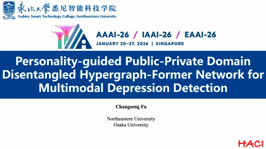 东北大学悉尼智能科技学院的傅昌锃博士演示了如何利用个体差异引导的多模态信息进行抑郁检测。他通过大语言模型编码个性化特征,并结合动态超图技术,实现了具备泛化能力的自动化筛查工具,为心理健康预警提供了有效的辅助方案。