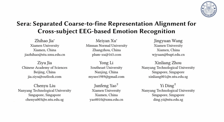 厦门大学的贾之豪博士生展示了名为 Sera 的脑电情感识别框架。通过模拟大脑神经活动的生成过程,成功将复杂的脑电信号分解为独立的源信号,显著提升了情感分类的准确性,在跨个体建模实验中表现出良好的稳定性。