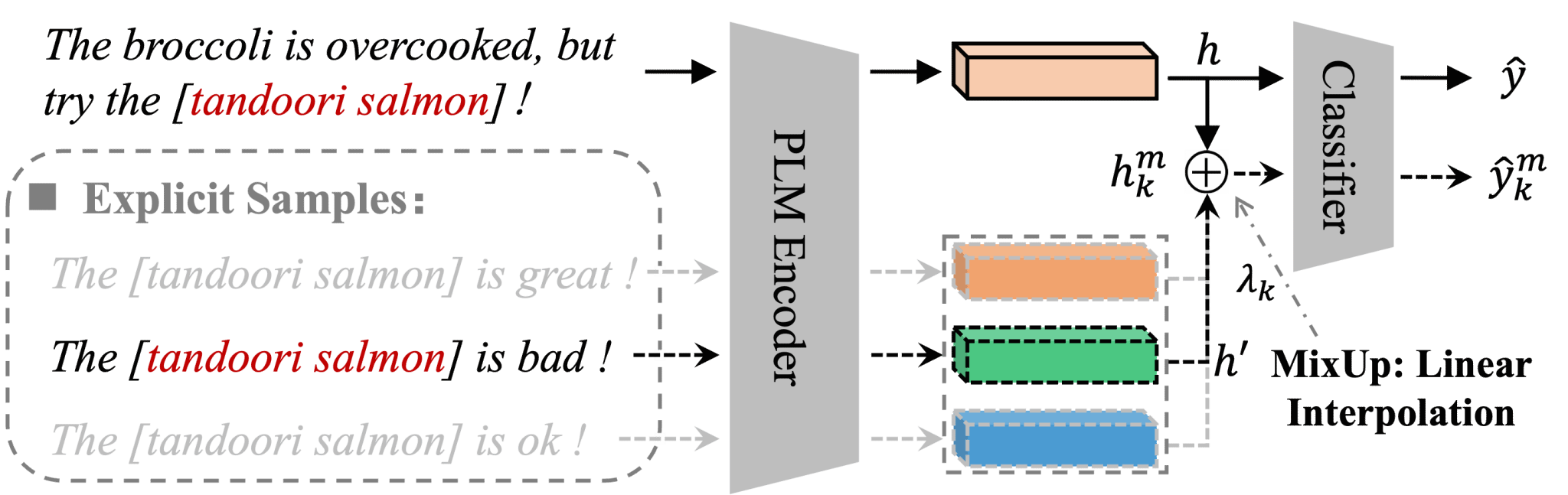 识别隐式情感仍是方面级情感分类(Aspect-level Sentiment Classification, ALSC) 任务中的核心挑战。在这类任务中,情感极性不会通过情感词直接表达,导致模型难以精准捕捉情感线索。本文提出一种简洁且高效的方法--SentiMix,该方法通过情感混合实现情感强度的增强,以此提升模型检测和放大情感线索的能力,尤其适用于表达模糊的句子。具体而言,SentiMix会引入不同极性的原型情感词,构建出情感显式的辅助句子,再将其与原始评论语句进行融合,生成包含混合情感信号的增强表征。基于这类增强信号开展训练,模型能够放大模糊表达的情感强度,从而提升对语境依赖型情感歧义的处理能力。在三个公开 ALSC 数据集上的大量实验验证了SentiMix方法的优越性,同时消融实验也证实:情感尺度化增强机制对提升隐式情感理解能力具有显著效果。