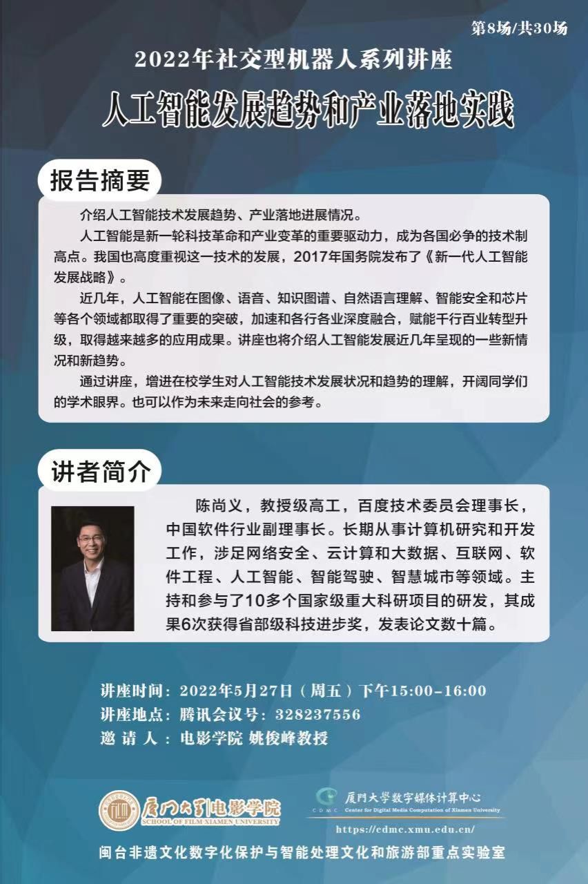近几年,人工智能在图像、语音、知识图谱、自然语言理解、智能安全和芯片等各个领域都取得了重要的突破,加速和各行各业深度融合,赋能千行百业转型升级,取得越来越多的应用成果。讲座也将介绍人工智能发展近几年呈现的一些新情况和新趋势。