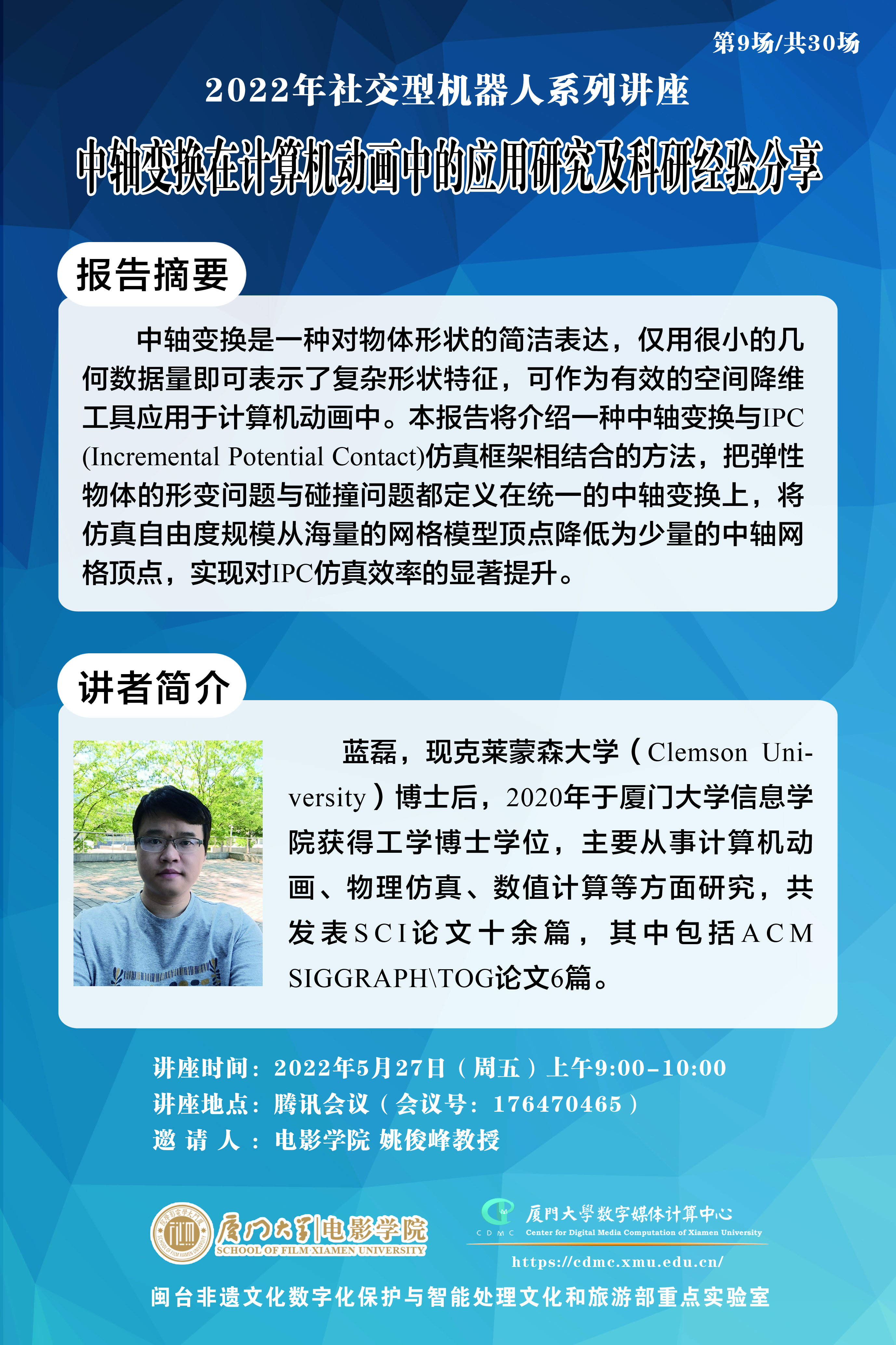 报告题目:中轴变换在计算机动画中的应用研究及科研经验分享