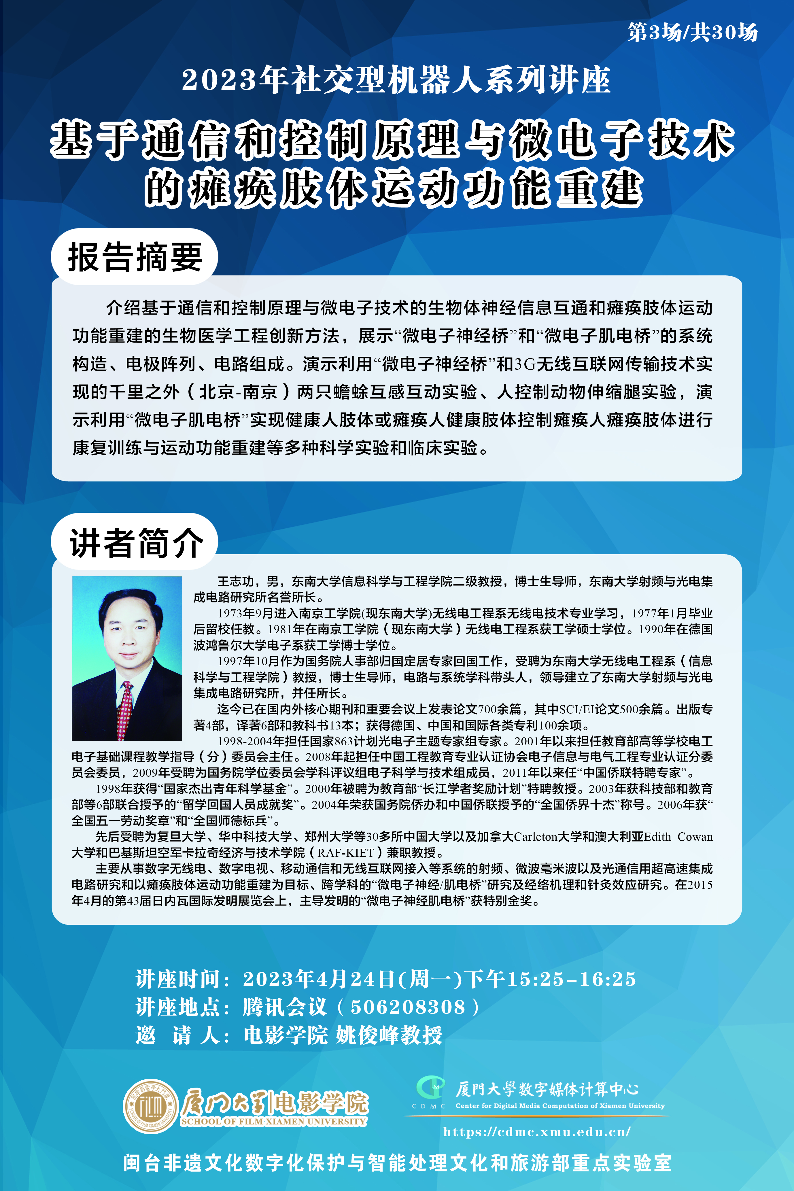 讲座时间:2023年4月24日(周一)下午15:25-16:25