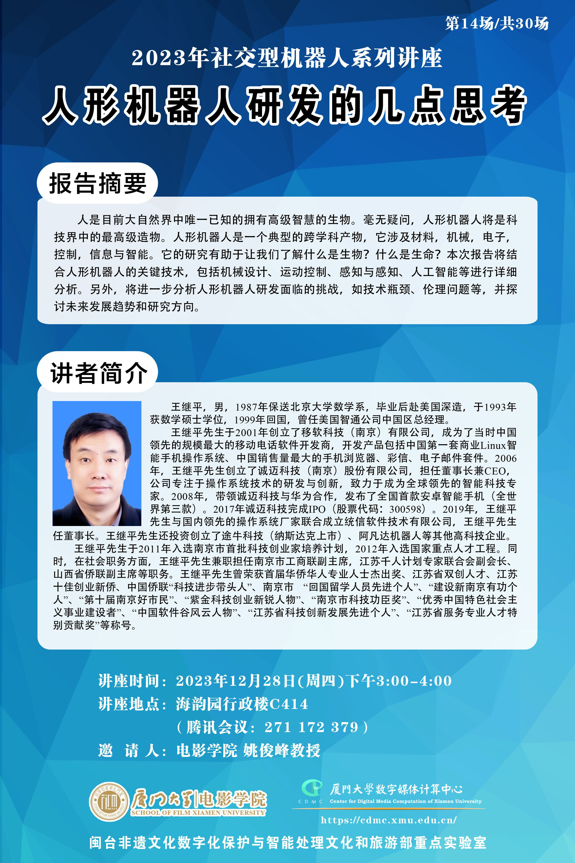 讲座时间:2023年12月28日(周四)下午3:00-4:00